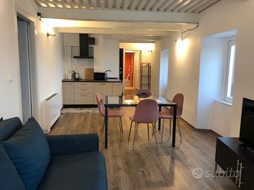 MUGGIA ESCLUSIVO APPARTAMENTO PRIMO INGRESSO completamente arredato con vista mare vendesi in palazzina di nuova costruzione con ascensore sita a secondo piano. Composto da: atrio, saloncino con anglo cottura, terrazzo abitabile, matrimoniale con cabina armadio, bagno, terrazzo, riscaldamento autonomo con pompa di calore e climatizzazione. Possibilità posto auto, cl. C € 400.000,00