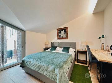Nel centro storico della città e a pochi passi dal Polo Universitario, appartamento in palazzina signorile ristrutturata nel 2024. Diposto su due livelli da cui si può accedere tramite una scala interna in legno. La soluzione è attualmente suddivisa ad uso B&B ed è composta da tre camere matrimoniali ciascuna con bagno privato. Il primo piano ospita una spaziosa camera con dettagli in legno, mini piscina idromassaggio e servizio con doccia. Il piano superiore, mansardato, ospita due camere matrimoniali, di cui una con accesso diretto alla terrazza a tasca coperta con zona relax. Il posto auto è privato con accesso da Via Monte Solarolo. Ottima soluzione per locazione turistica o studenti.
