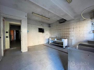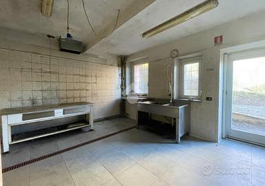 Fabbricato al primo piano adibito a ristorante/pizzeria, formato da una grande sala con forno a legna per pizze, un locale ufficio. All'interno dell'area di accesso esclusiva al personale troviamo una ampia cucina con angolo per lavaggio piatti e stoviglie, annesso locale celle frigorifere,