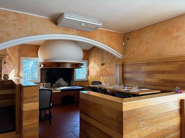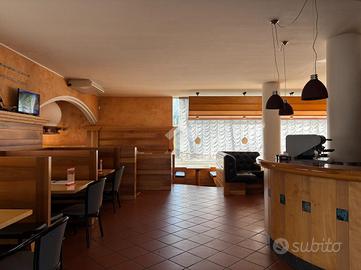 Al piano terra si trovano la zona bar-ristorante, un accogliente angolo con fogolar, la cucina professionale, una seconda sala da pranzo e una zona esterna ideale d'estate per pranzi o aperitivi. A rendere l'ambiente caratteristico e funzionale, è presente un forno a legna per la pizza, elemento di grande richiamo commerciale.