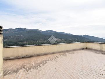 L'ampio soggiorno, illuminato dalla luce naturale, si apre su un balcone. Completa la proprietà un esclusivo terrazzo, perfetto per godersi la tranquillità del borgo con parenti e amici.