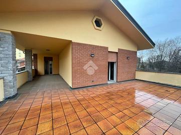 La soluzione è composta da un ingresso su vano scala e al primo piano accediamo all'immobile con un ampio disimpegno, quatro vani che si prestano a diversi usi, due bagni e camera di circa 50 mq che ha sfogo diretto su un ampio terrazzo che si sviluppa su i due lati del fabbricato.