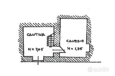 Una scala interna conduce a due zone cantina, entrambe con altezza di circa 1,70 mt: