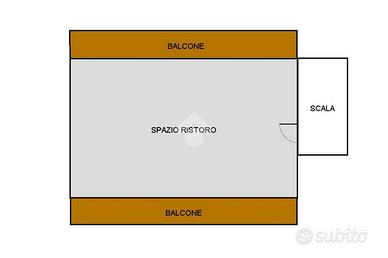 All'entrata del piano primo sono presenti ulteriori servizi per gli utenti, una sala di circa 100 mq con canna fumaria, un balcone e un terrazzo che si affaccia sulla piazza.