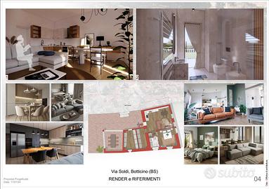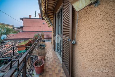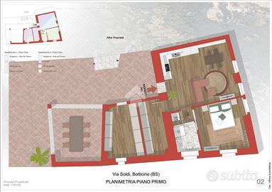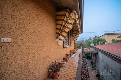 Attraverso una scala esterna giungiamo all'appartamento al primo piano: trattasi di spazioso quadrilocale dalle metrature introvabili. Si sviluppa tutto sul piano ed è composto da cucina separata abitabile, ampio e luminoso soggiorno, camera singola, due camere matrimoniali e bagno finestrato. Tutta la zona giorno è circondata da un balcone con vista sulle colline di Botticino. Nella zona notte invece troviamo un altro balcone che sfocia in una splendida terrazza con pregevole vista sulla corte interna.