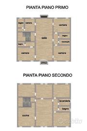 La facciata è arricchita da dettagli d'epoca, quali finestre con cornici in pietra, persiane in legno e grate in ferro battuto, che richiamano lo stile tradizionale delle dimore nobiliari di campagna. Un piccolo balconcino con arco centrale sottolinea la maestosità della struttura, mentre i vasi ornamentali con piante e fiori donano un tocco di accoglienza e cura.