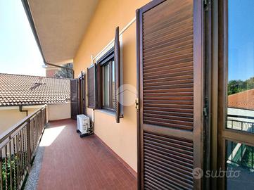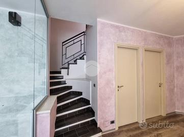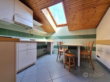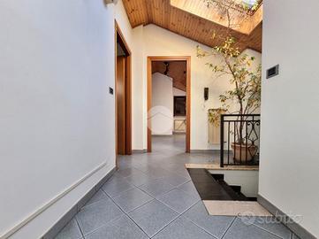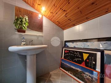 CALUSO: In zona comoda ai servizi e alla piazza del mercato; alloggio su due livelli in piccolo complesso con riscaldamento autonomo e basse spese di gestione. L'appartamento necessita di piccole modifiche in quanto il primo livello era adibito a studio privato. L'ingresso dispone di terrazzo esterno con portoncino blindato dal quale si accede a due stanze ampie e luminose dalle quali si può ricavare un comodo salone. Dal disimpegno si ha l'accesso a quattro locali con bagno e sfogo esterno sul balcone. Dai quattro vani si possono realizzare facilmente una cucina e due camerette con cabina armadio. Tramite una scala interna si raggiunge il piano superiore mansardato, costituito da una cucina con locale dispensa, due camere da letto e due bagni. Il riscaldamento dell'abitazione è alimentato a metano tramite radiatori con caldaia autonoma. Gli ambienti interni si presentano in ottimo stato conservativo e la distribuzione attuale consente svariate soluzioni ai fini di poter personalizzare e sfruttare tutti gli spazi presenti. Completano la proprietà una cantina al piano interrato e un box auto doppio di 30 mq.