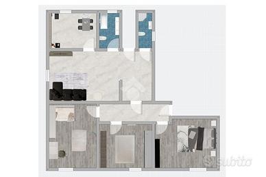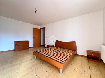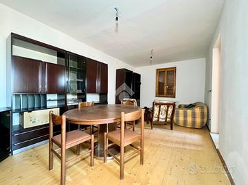 Al piano superiore è presente un ampio appartamento di circa 124 mq calpestabili, libero e da ristrutturare. L'unità, per la quale erano già stati avviati alcuni lavori, si compone di tre camere da letto, soggiorno, cucina, due bagni, oltre a una scala interna che conduce alla soffitta. Completa la proprietà una cantina al piano terra.