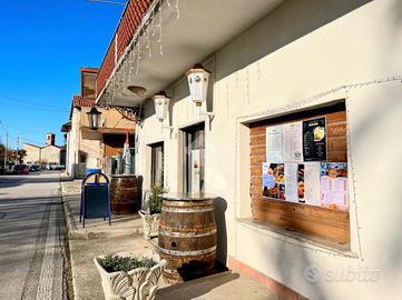 Al piano terra si trova una trattoria attualmente locata a inquilini affidabili, che gestiscono l'attività con continuità. Il locale si compone di un bancone bar, due sale adibite alla ristorazione con posti a sedere, servizi igienici per la clientela, cucina attrezzata e due locali ad uso deposito. Il riscaldamento degli ambienti è garantito da camino e stufa.