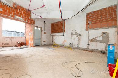 La soluzione, indipendente sui tre lati, si trova in un contesto prettamente industriale in una zona molto tranquilla e non lontana dal centro del paese. L'immobile è disposto su tre livelli e consente ad una famiglia molto numerosa di avere la propria indipendenza. Al piano terra è presente un ampio magazzino di circa 135 mq con la possibilità di sostituire il portellone di ingresso con porte a battente in modo da poter creare addirittura un'autofficina meccanica all'interno della quale è possibile posizionare tre ponti sollevatori per autoriparazioni. La scala interna conduce al primo piano dove, oltre ad un altro magazzino di 25 mq, è ubicato il primo immobile, attualmente allo stato grezzo, e ciò consente di personalizzare le rifiniture a proprio piacimento. L'alloggio in questione ha a disposizione 2 camere da letto ed una zona giorno con affaccio diretto sul terrazzo. È possibile istallare due servizi igienici. Proseguendo dalla scala è possibile accedere all'appartamento del secondo piano. Il corridoio conduce a ciascuna stanza. La zona giorno è spaziosa e contiene, un divano, un tavolo con sei sedie ed un mobile tv, oltre ad una cucina angolare. Le due camere da letto sono entrambe di dimensioni generose ed infine il bagno è fornito di doccia. Una porta finestra conduce al terrazzo sul tetto piano, ideale per prendere il sole e trascorrere pomeriggi in compagnia all'aria aperta.