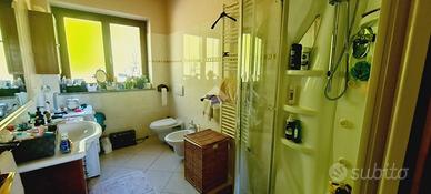 Una comoda scala in legno conduce al piano superiore dove sono presenti altre due camere da letto, uno studio, ideale per il lavoro o il relax, ed un secondo servizio igienico finestrato e dotato di vasca.