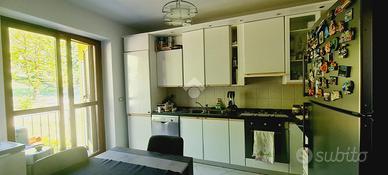 In un contesto di sole quattro famiglie, luminoso e spazioso appartamento bilivello situato al primo e ultimo piano con tre camere da letto e due balconi.