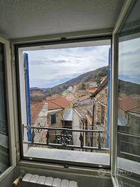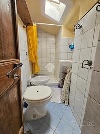 Salendo al primo piano, tramite scala condominiale, accediamo al resto della casa divisa internamente su due livelli: al primo livello troviamo il soggiorno con la cucina vista, salendo al secondo livello troviamo invece due camere da letto, una piccola cabina armadio e un bagno finestra con doccia.