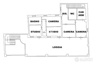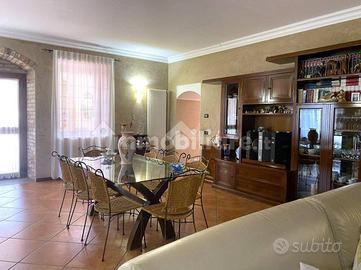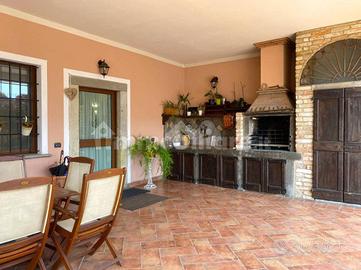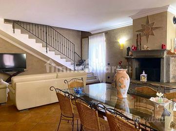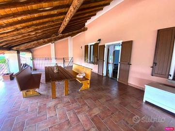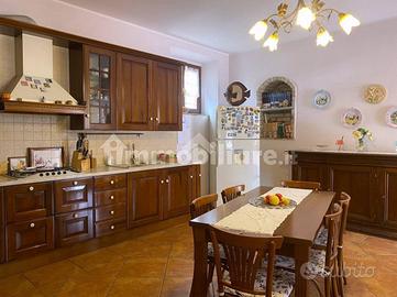 Al piano terra si trovano la cucina, un grande salone di circa 60 mq con camino, un bagno e la lavanderia, oltre al porticato che affaccia sul cortile esclusivo. Al primo piano si sviluppa la zona notte con tre camere da letto, tra cui la matrimoniale dotata di cabina armadio, e un bagno. Sullo stesso piano è presente anche una seconda unità abitativa composta da soggiorno con cucina, disimpegno, camera, bagno e un ampio loggiato di circa 110 mq.