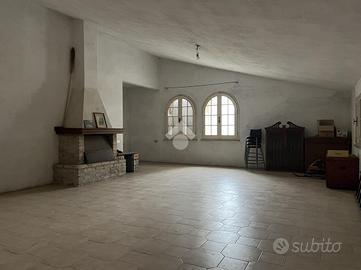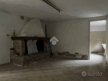 Il fabbricato si sviluppa su due livelli. Al piano terra l'ingresso conduce ad un grande ambiente con camino, ideale come taverna o zona conviviale, collegato ad un ampio porticato. Sempre al piano terra si trova un locale lavanderia con collegamento interno al garage. Al piano primo è presente un ambiente che può diventare soggiorno con angolo cottura, una spaziosa stanza, che può diventare camera da letto ed un bagno di ampie dimensioni, finestrato, dotato di vasca e doccia.