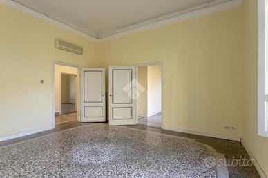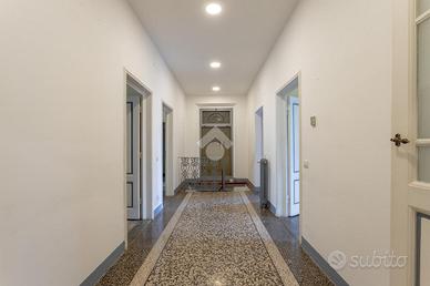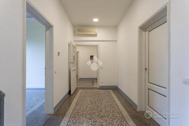 L'unità immobiliare è composta da 9 vani adibiti ad uso ufficio disposti su due livelli, doppio servizio igienico e un giardino interno esclusivo, ideale per studi medici e professionali.