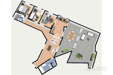 Sono presenti doppi servizi, garantendo praticità e comodità. Uno dei punti di forza dell'appartamento è il terrazzo al piano, un angolo riservato dove godere di momenti all'aperto.