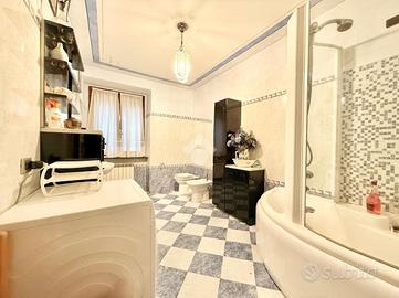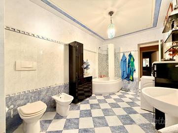 ingresso, cucina abitabile, quattro camere da letto, doppio soggiorno, una stanza adibita a studio, dispensa, lavanderia e due bagni finestrati di ampia metratura con box doccia.