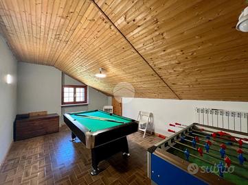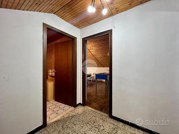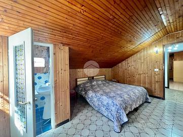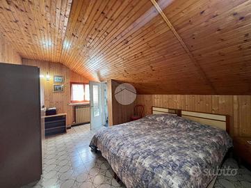 La seconda unità è situata all'ultimo piano dello stabile e si sviluppa su ambienti ampi e versatili, suddivisi in diversi locali ad uso camera, tutti completamente rivestiti in perlinato, che conferiscono un autentico stile montano. Sono presenti due bagni, attualmente da rivedere con alcuni interventi di miglioria.