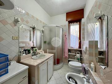 La prima unità si trova al piano terreno e si presenta in buone condizioni interne. È composta da una spaziosa camera da letto, un bagno finestrato con box doccia e una luminosa zona giorno con cucina a vista e camino.