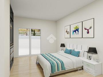Il progetto del futuro appartamento prevede una luminosa zona living con angolo cottura, collegata tramite disimpegno alla zona notte composta da due camere matrimoniali, antibagno e bagno finestrato con box doccia.