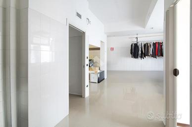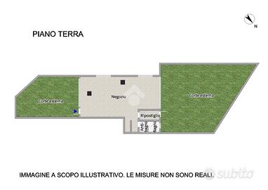 La configurazione attuale prevede un ampio locale open-space, un bagno con antibagno e due corti private, una sul fronte e una sul retro, perfette per creare zone esterne vivibili e funzionali.