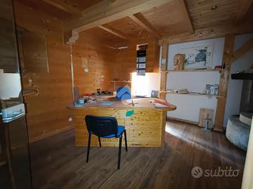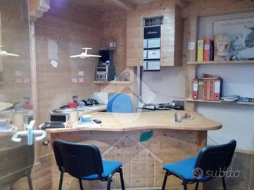 E' presente un ufficio interamente in legno, servizio igienico ed ulteriore stanzino. La parte più ampia è composta da tre vani. Doppio ingresso adatto anche per i veicoli.
