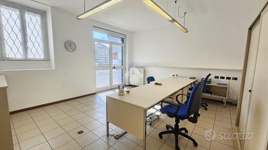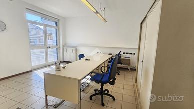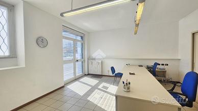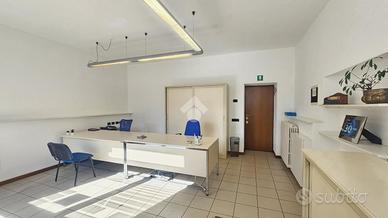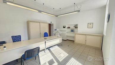 Il locale principale, che in passato ospitava fino a tre postazioni con scrivanie, è ben illuminato e dispone di una finestra per una ventilazione garantendo un ambiente di lavoro confortevole, e offre una grande visibilità grazie alla vetrina affacciata direttamente sulla strada principale. Questa caratteristica rende lo spazio ideale per attività commerciali che desiderano esporre pubblicità e attirare l'attenzione dei passanti. Inoltre, è presente una comoda porta sul retro, facilitando l'accesso per il personale o per il carico e scarico merci.