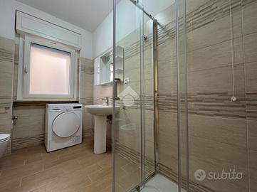 Zona lavanderia esterna, posta nel terrazzo, in box separato e chiuso; completa di lavatrice e asciugatrice a disposizione degli inquilini.