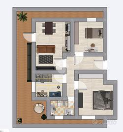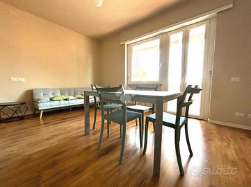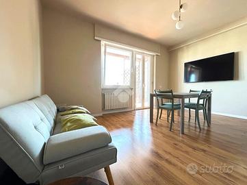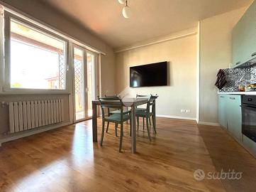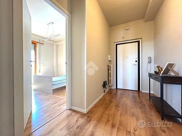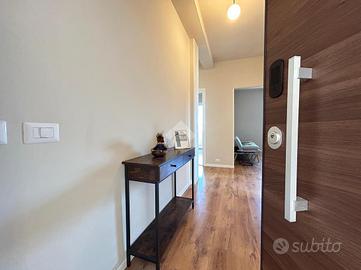 Comodo accesso al balcone angolare dell'appartamento, che offre luce naturale e uno sfogo esterno per i momenti di relax.
