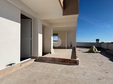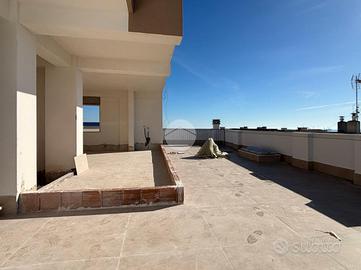 Salendo al piano superiore, si apre a noi una terrazza di proprietà in parte loggiata, caratteristica che regala un ambiente ideale per momenti di relax all'aperto, con vista panoramica mare e monti.