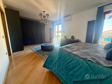 Benvenuti a Parco Anna, una zona residenziale che unisce il comfort moderno alla praticità quotidiana, offrendo una vasta gamma di servizi essenziali proprio a due passi da casa. Qui troverete tutto ciò di cui avete bisogno, dai supermercati Decò alla farmacia Borrelli, fino a comodi servizi come parrucchieri e negozi di casalinghi. L'immobile che vi presentiamo si trova al terzo piano di un edificio dotato di ascensore, e rappresenta l'unione armoniosa di due appartamenti, creando una spaziosa abitazione di 240 mq. Entrando, sarete accolti da un ampio salone con angolo cottura, caratterizzato da un doppio affaccio su un balcone che illumina e arieggia l'ambiente. La zona living include un bagno con doccia e lavanderia, oltre a un salone doppio che si apre su un balcone privato, perfetto per momenti di relax o convivialità. Un elegante studio, separato da una raffinata porta in vetro, completa questa area. Il disimpegno conduce alla zona notte, dove due spaziose camere da letto vi garantiranno il massimo del comfort. Qui troverete anche una pratica cabina armadio e un bagno con doccia, progettato per rispondere alle esigenze di funzionalità e stile. Interamente ristrutturato con materiali di alta qualità, l'appartamento è ideale sia per una famiglia numerosa sia per due nuclei familiari distinti, grazie ai due ingressi indipendenti già esistenti. Non manca la comodità di due posti auto di proprietà, che completano l'offerta di questa esclusiva dimora. Questo immobile rappresenta non solo un'opportunità di investimento, ma anche un rifugio accogliente dove vivere serenamente, grazie alla sua posizione strategica e alle sue caratteristiche uniche. Siamo qui per accompagnarvi in ogni passo del vostro viaggio verso la casa dei vostri sogni.