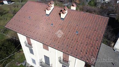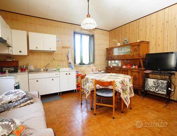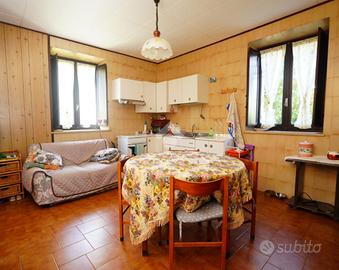 In centro paese, i due bilocali distinti, sono situati al piano terra di una piccola palazzina priva di spese condominiali, fatta eccezione per la luce delle scale. Ogni appartamento ha una superficie calpestabile di circa 40 mq, per un totale complessivo di circa 80 mq. Entrambi sono caratterizzati da un rivestimento delle pareti in pannelli di legno compensato fotografato che donano un'atmosfera calda ed accogliente. Le proprietà comprendono anche un giardino privato di circa 500 mq, un box auto ed un magazzino, utilizzabile come deposito, con un piano superiore che offre ulteriore potenziale di utilizzo. L'immobile esposto a sud-ovest non dispone attualmente di un impianto di riscaldamento attivo. È però presente la predisposizione interna per l'allaccio al gas GPL canalizzato. L'immobile esposto a sud è invece dotato di pannelli elettrici per il riscaldamento. Anche in questo caso è possibile l'allaccio al gas GPL, tramite allacciamento esterno, ma senza predisposizione interna. Gli appartamenti sono serviti da un'antenna centralizzata. A completare, una cantina ed un lavatoio comune. Gli immobili vengono venduti parzialmente arredati. La vendita è riferita preferibilmente all'intero blocco.