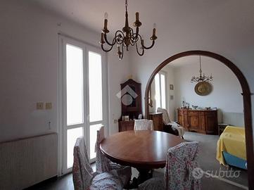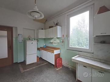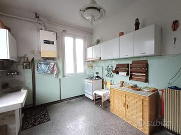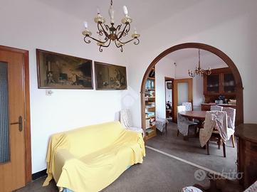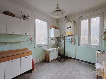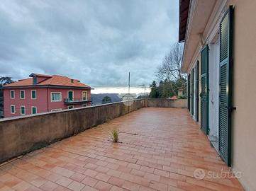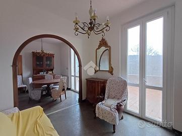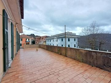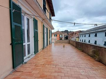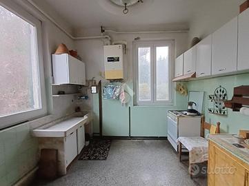 PASSO DEI GIOVI - Via XXV Aprile Sulle alture di Mignanego in località Passo dei Giovi ed a soli due km da Busalla, proponiamo appartamento di 8 vani in piccolo contesto ordinato dotato di grande terrazzo vivibile di proprietà e senza spese di amministrazione. L'immobile è situato al secondo piano di una palazzina composta da tre piani complessivi. Una scala condominiale conduce alla parte abitativa che si sviluppa su tutto il piano; In ingresso troviamo un corridoio che ci conduce ai vari ambienti della casa. La zona giorno è composta da una spaziosa cucina abitabile e da un soggiorno doppio con caratteristico arco centrale che, idealmente, separa il salone in due, lasciando spazio da un lato al classico salotto ed all'altro alla sala da pranzo. La zona notte è composta da tre camere matrimoniali; adiacente ad una delle camere troviamo un piccolo disimpegno con annessi due locali, entrambi dotati di finestra, il primo ad uso lavanderia ed il secondo ad uso dispensa. Nella parte centrale troviamo invece un ampio antibagno, eventualmente arredabile ed il bagno vero e proprio dotato di finestra e vasca. Tutte e tre le camere da letto ed il soggiorno, sono dotati di porte-finestre (Cinque in totale) che danno accesso diretto al grande terrazzo vivibile di proprietà, vero punto di forza dell'immobile. Uno spazio esterno, la cui ampia metratura, ne consente l'utilizzo multiplo, sia per momenti di relax e/o mangiate, sia per spazio giochi per bambini oppure per animali domestici. Il riscaldamento è termo-autonomo tramite calderina a metano e tutti gli infissi (Porte-finestre e finestre) sono stati recentemente sostituiti con finestre di nuova generazione in PVC Taglio termico e vetro-camera, consentendo così un grosso risparmio sui costi di gestione. Internamente l'immobile (Ad eccezione degli infissi nuovi) risulta allo stato originale e necessita di alcuni interventi di ripristino, considerando che la grande disponibilità di spazi consente un' eventuale dive