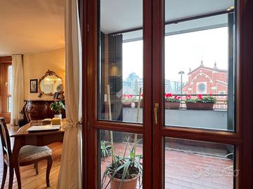 L'unità immobiliare è inserita in un edificio residenziale di impronta signorile ed è caratterizzata da un'ampia metratura, frutto dell'unione di due unità immobiliari. Internamente è così composto: ingresso su un soggiorno doppio con affaccio esterno e con accesso a un terrazzino, cucina abitabile, 5 camere da letto, 4 bagni, un secondo terrazzo e due balconi. Completano la proprietà due cantine di pertinenza. Possibilià di acquistare un box di 31 mq con basculante elettrica, ad un prezzo aggiuntivo di €60.000,00.