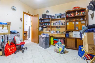 L'ingresso principale immette invece al piano superiore, dove un corridoio disimpegna tre camere da letto, un salottino e un bagno con vasca; sullo stesso livello è presente un ampio balcone. Una scala interna collega al piano inferiore, dove vi è un grande ripostiglio, il soggiorno, il secondo bagno, con doccia e la spaziosa cucina.