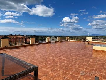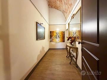Residenza di Prestigio con Terrazza Panoramica di 130 mq nel Cuore di Montalto di Castro Nel suggestivo centro storico di Montalto di Castro, in posizione dominante sopra il Comune e tra le più comode e accessibili dell'intero borgo, proponiamo in vendita una proprietà unica nel suo genere, capace di coniugare fascino storico, ampi spazi e comfort contemporanei. Situato al secondo piano di un palazzo signorile, l'appartamento si sviluppa interamente su un unico livello per una superficie interna di circa 266 mq, recentemente ristrutturato nel 2021 con grande attenzione al dettaglio. L'immobile si distingue per: * cinque camere da letto * quattro bagni * ampi disimpegni e ambienti di rappresentanza * soffitti alti con affascinanti volte in mattoni * grande luminosità grazie all'esposizione sud pieno e alle ampie finestre con infissi nuovi Le finiture uniscono eleganza e calore: pavimentazione in gres effetto legno nella maggior parte degli ambienti, con una zona che conserva il cotto originale, a richiamare l'autenticità storica dell'immobile. A rendere questa proprietà davvero irripetibile è la straordinaria terrazza panoramica di circa 130 mq, allo stesso livello dell'abitazione. Uno spazio raro nel centro storico, perfetto per: * zona pranzo all'aperto * area relax o solarium * momenti conviviali con una vista impareggiabile Da qui si gode di un panorama aperto sul centro storico, che si estende fino al mare e alle colline toscane, regalando scorci di assoluta bellezza in ogni momento della giornata. DATI TECNICI: * Riscaldamento autonomo (gas metano) * Impianto di climatizzazione presente + predisposizioni * Infissi nuovi * Classe energetica G Grazie alla generosa metratura e alla distribuzione degli spazi, questa proprietà si presta perfettamente sia come: * residenza di prestigio per famiglie numerose o per chi cerca ambienti rappresentativi * struttura ricettiva di charme (B&B, affittacamere, boutique hospitality) Una soluzione rara, dove s