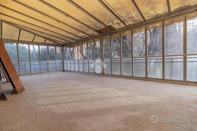 I locali prevedeno grande sala, veranda con affaccio sul verde, zona bar e cucine oltre ai bagni.