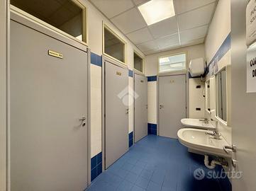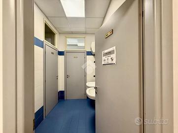 Sempre sullo stesso livello una stanza bagni e un locale impianti oltre all'ampio corridoio che accompagna agli uffici.