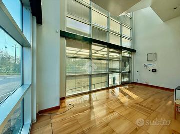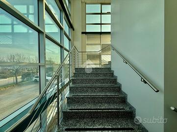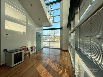L'immobile si sviluppa su due livelli, al piano terra l'atrio d'ingresso ci accompagna attraverso l'ascensore o la rampa di scale al piano superiore dove sono collocati gli uffici.
