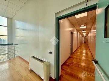 Il piano superiore è caratterizzato da sei uffici di media dimensione oltre alla sala riunioni con parete a vetro di maggiore importanza di circa 120mq.