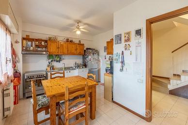 Nella zona esclusiva e riservata dei Cappuccini, a pochi passi dai principali servizi, proponiamo in vendita un accogliente multilocale di 150 mq disposto su tre livelli (non mansardati), con ingresso semi-indipendente e situato al piano rialzato di una palazzina in cortina in buono stato. La proprietà si apre con un ampio terrazzo privato che conduce all'ingresso dell'abitazione, il piano principale comprende un luminoso salone doppio, una cucina abitabile di generose dimensioni e un bagno completo di box doccia. Una comoda scala ci accompagna al livello superiore, dedicato alla zona notte, dove troviamo tre ampie camere da letto, un secondo servizio finestrato completo di box doccia e un balconcino funzionale, perfetto da personalizzare secondo le proprie esigenze. Proseguendo al piano superiore si accede a un ambiente aggiuntivo estremamente versatile, ideale come studio, camera matrimoniale, sala hobby o area relax. La caratteristica finestra a lunetta dona eleganza e luminosità, mentre l'accesso diretto a un terrazzo panoramico permette di vivere piacevoli momenti all'aperto in compagnia di amici e familiari. L'abitazione è dotata di porta blindata, infissi in doppio vetro per un eccellente isolamento termoacustico, condizionatore, citofono, zanzariere e tende da sole. Completa la proprietà un posto auto scoperto e vi è la possibilità di acquistare a parte un box auto a 29.000 euro