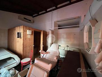 La struttura principale è composta da un'area dedicata alla ristorazione dove sono presenti un ampio ristorante, un bar e una sala da the al piano terreno, serviti da un ampio parcheggio. Il piano seminterrato ospitava una zona palestra, con a servizio spogliatoi e bagni, oltre ad una zona sauna e locale massaggi. da qui si accede alla piscina di generose dimensioni con spazio solarium.