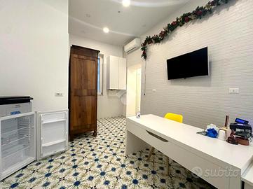 Cinque balconi offrono una buona vista sul quartiere e su Castel Sant'Elmo, mentre un monolocale indipendente aggiunge versatilità all'immobile.