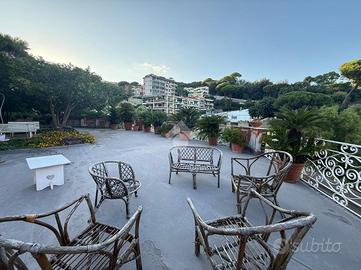 La proprietà si distingue per i suoi ampi terrazzi panoramici e un giardino privato impreziosito da eleganti cicas e da uno storico gazebo.
