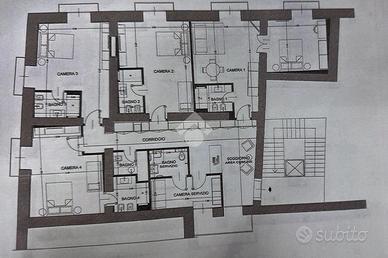 Attualmente cosi composto; Ingresso in ampio disimpegno,5 camere da letto ognuna con bagno privato e balcone, altro bagno padronale e ampio vano lavanderia.