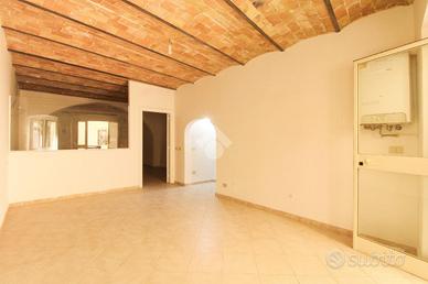 L'immobile si trova al piano terra con ingresso indipendente e si sviluppa su due ambienti principali, spaziosi e ben collegati, caratterizzati da soffitti con mattoni a vista e archi interni che donano fascino e personalità allo spazio.