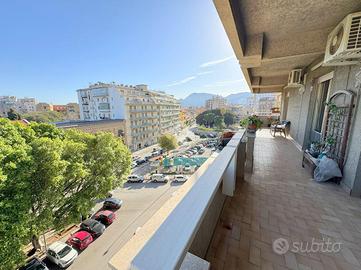 A 1 km e mezzo dalla stazione Notarbartolo e a 1 km dalla circonvallazione, in ottimo contesto, ove sono presenti istituti scolastici nelle immediate vicinanze ed i principali mezzi pubblici di trasporto che consentono facilmente i collegamenti con il centro città e le zone più periferiche. Questo vantaggio rende attraente l'immobile anche per i clienti che hanno forte esigenza di spostamento frequente verso la provincia o la periferia. Lo stabile ubicato ad angolo fra Piazza Principe di Camporeale e Via Serradifalco, in zona molto richiesta dal cliente che cerca tutti i comfort a due passi della propria abitazione. Ben servita commercialmente e fornita di innumerevoli servizi utili al vivere quotidiano, dalle scuole alle farmacie, dai supermarket ai piccoli commercianti, alla posta. Fabbricato fra la fine degli anni '70 e inizi anni '80, dispone di ascensore e di servizio di portierato full time. Le spese condominiali ammontano a circa 100 euro mensili. L'immobile posto al quinto piano si presenta in buono stato, gli infissi sono in alluminio e vetro e la pavimentazione è in ceramica, è presente il riscaldamento autonomo, gli impianti sia idrico che elettrico sono in buono stato. Vi è inoltre un box auto al piano seminterrato di pertinenza dell'immobile, che è possibile acquistare al prezzo di euro 39.000 oltre il prezzo dell'appartamento. Non è possibile acquistare solo il box, vi è la possibilità di acquistare l'appartamento senza box. Internamente le camere sono ben disimpegnate fra loro. L'appartamento presenta due ingressi, uno su salone triplo e uno su soggiorno. Presenti tre camere da letto matrimoniali, cucina, lavanderia, doppio servizio igienico, ripostiglio e un balcone di 22mq che gode di una ampia vista sul Montepellegrino. L'immobile, grazie alla tripla esposizione, una su via Serradifalco, una su Piazza Principe e una sul retro, è luminoso e arieggiato. Ideale per una famiglia numerosa, si presta alla personalizzazion..