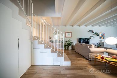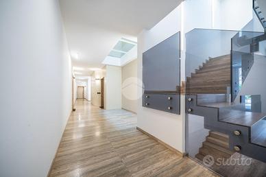 Gli spazi interni sono stati progettati con grande cura ai dettagli: al piano terra troviamo una luminosa zona giorno con cucina abitabile, caratterizzata da finiture eleganti in gres effetto legno, che conferiscono calore e modernità all'ambiente.