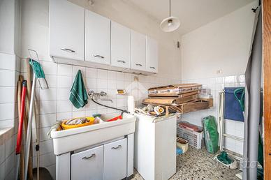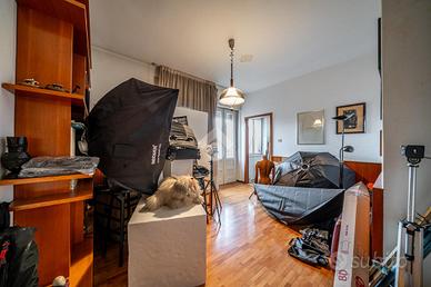 L'accesso all'immobile è consentito da due porte, cosa che permetterebbe la divisione in due appartamenti separati. Entrando dalla prima porta si viene accolti da un corridoio parte della zona giorno, che fa anche da disbrigo per il primo bagno finestrato. La zona giorno è composta da ampia cucina abitabile, sala da pranzo e salotto separati.